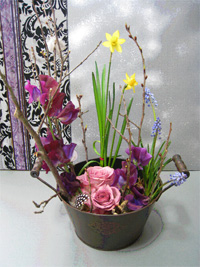 フレッシュ・ポット・プリザーブト・フェイク(アート)フラワー等様々な花材を使って、アイデアいっぱいのアレンジメントを、季節やトレンド等毎回色々なテーマで、身近に花を楽しんでいただくためのコースです